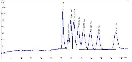 Ziel der Studie war die Entwicklung und Validierung einer Methode zur Bestimmung der Aminosäuren Homocystein, Valin, Methionin, Allo-Isoleucin, Isoleucin, Leucin, Tyrosin und Phenylalanin im menschlichen Blutplasma in einem Durchgang. Die Ahornsirup-Urin-Krankheit (MSUD) ist eine der autosomal-rezessiv vererbten Stoffwechselerkrankungen, die die Aminosäuren Valin, Allo-Isoleucin, Isoleucin und Leucin betrifft. Ein erhöhter Homocysteinspiegel geht mit Homocystinurie einher, einer weiteren Stoffwechselerkrankung. Phenylketonurie (PKU) ist eine seltene Erbkrankheit, bei der der Körper die Aminosäure Phenylalanin nicht verstoffwechseln kann. Normalerweise wird sie verstoffwechselt und in die Aminosäure Tyrosin umgewandelt. Hohe Phenylalaninwerte sind schädlich für das Gehirn.